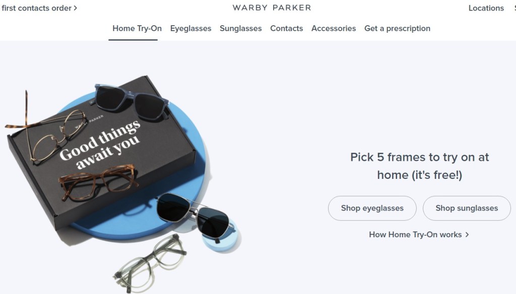 What exactly is it that makes Warby Parker different from its competitors? For starters, the company’s business model mainly focuses on online distribution. Warby Parker has cut out third party distributors by manufacturing and selling its products in house rather than to numerous showrooms. They have given their customers an alternative and unique way into purchasing eyeglasses by allowing them to pick five pairs of glasses to try, pick the best one, and ship the others back free of charge in their “Home Try-On Campaign.”